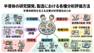 半導体と電子部品のものづくりに関連する6つのカテゴリ:【デバイス製品】【製造プロセス】【材料】【製造装置】【マーケット】【関連情報】