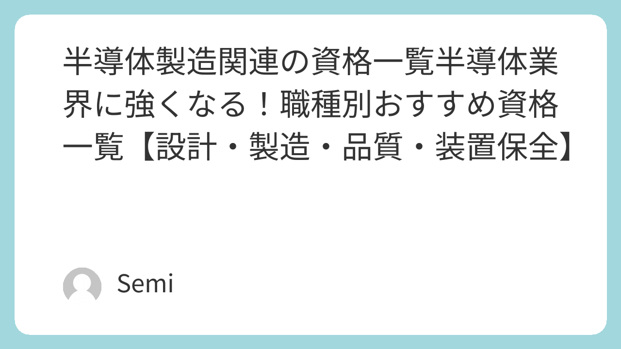 | 半導体製品製造技能士 | 厚生労働省 | 半導体製造に関する技能を認定する国家資格 |